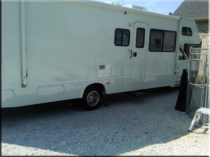 We travel to shows in a 36 foot Fun Mover motorhome, again set up for the
